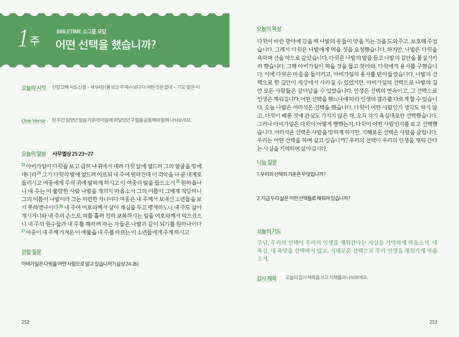 가장 보편적인 성경 읽기로 구약으로 시작하여 신약으로 이어지는 성경 순서로 구성되어 있습니다.